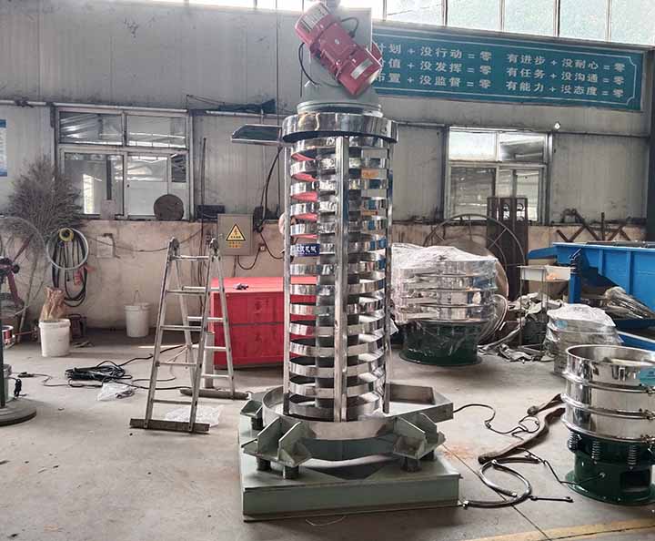 3.雙質體慣性式垂直振動提升機:這種提升機的垂直螺旋槽和下質體圓盤之間用板彈簧按圓的切向鏈接,慣性振動器大多采用平行軸式,安裝在圓盤上。板彈簧除起蓄能作用外,還對兩只提的運動寄到幾何約束作用,使上、下質體做相對垂直和扭轉運動。除了這些垂直振動提升機設備, 我公司生產的還有斗式提升機,板鏈提升機等提升機設備,想了解更多關于提升機的信息請撥打15836198876尋找王經理。