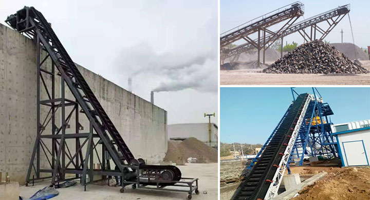 大傾角皮帶輸送機(jī)配波狀擋邊和橫隔板輸送帶,可大傾角至 90° 輸送,適用于多行業(yè)散狀物料,最大物料粒度 400mm,特殊物料需用對應(yīng)輸送帶。