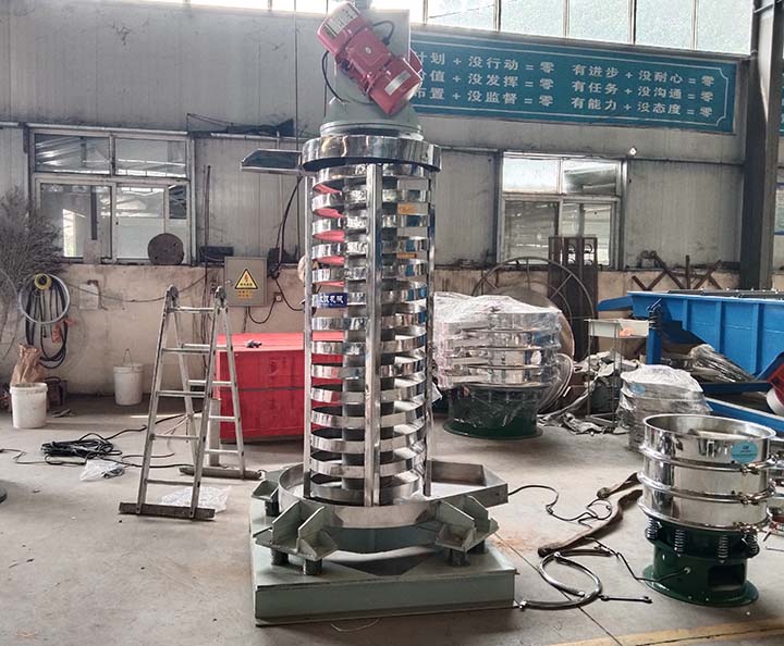 不垂直振動提升機結構簡單,維修容易,物料定量送出,輸送量連續可調,可作為各行業中,小顆粒物料的垂直輸送之用.除具有從下向上提升物料外,還可以完成對物料的干燥、冷卻作用.分開槽式、封閉式兩種結構,并可根據不同工藝的要求,設計物料顆粒分級作用的篩選提升機及設計易燃易爆物料的提升機。在化工、橡膠、塑料、醫藥、輕工、食品、冶金、建材、礦山、糧食等行業中均有著廣泛應用。